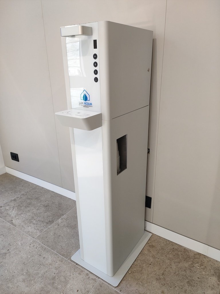 I nostri impianti di trattamento acqua per ufficio possono essere comodamente collocati nella aree adibite al ristoro del personale, e ben si integrano nello stile di arredamento dell’ambiente.