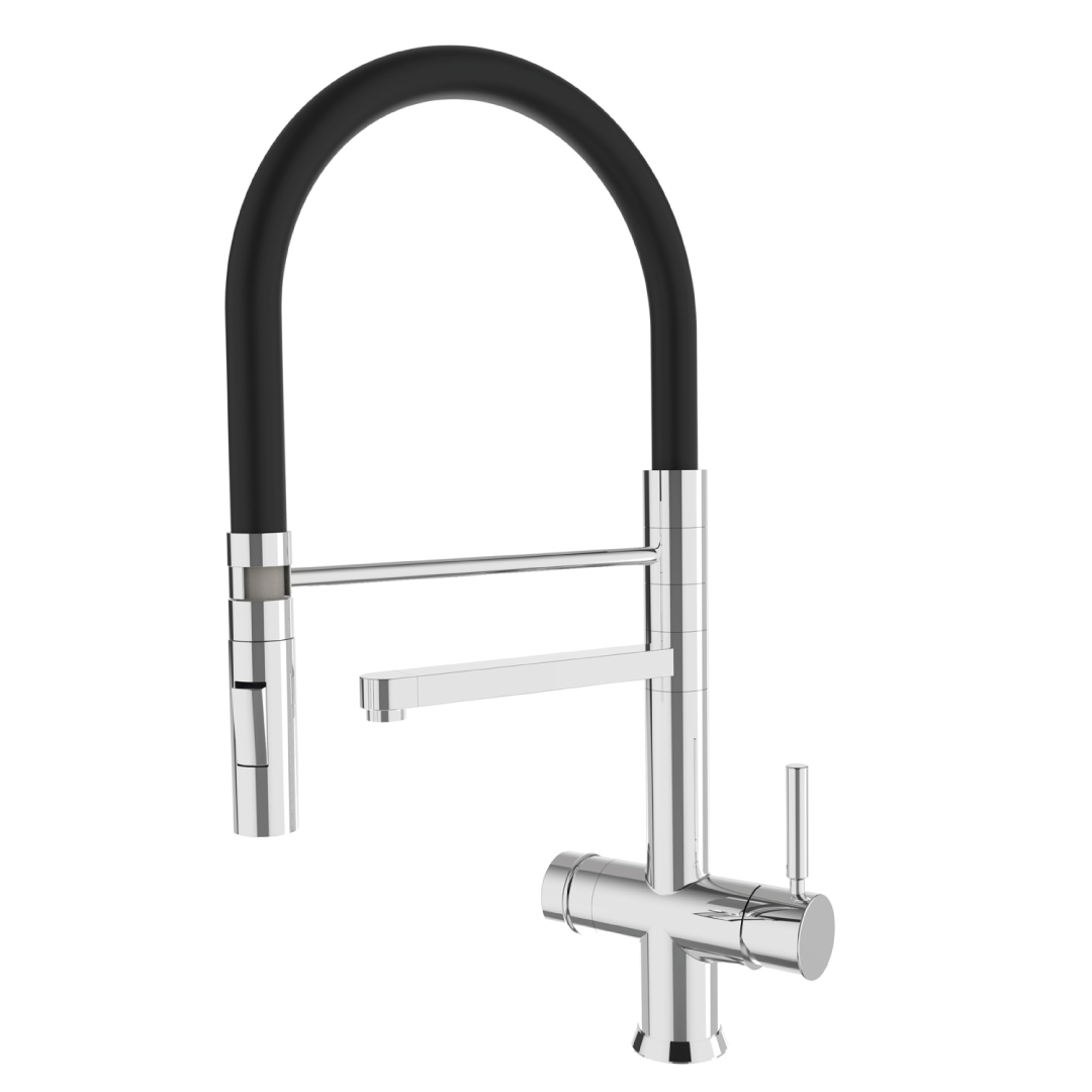 Non sempre è necessario aggiungere il rubinetto per il trattamento dell’acqua potabile creando un piccolo foro nel lavello. I nostri miscelatori sono nati per eseguire il trattamento dell’acqua potabile da un unico rubinetto.